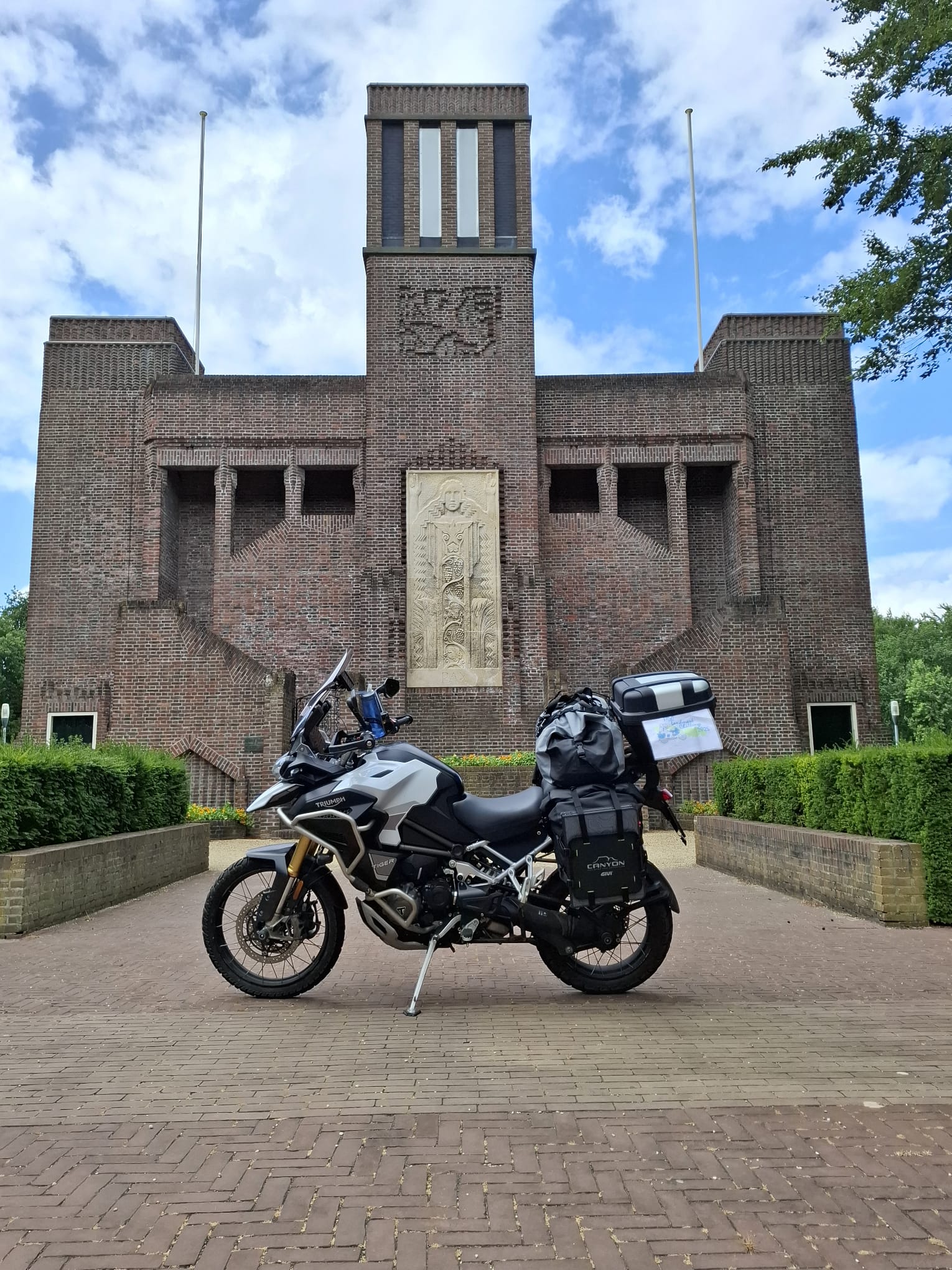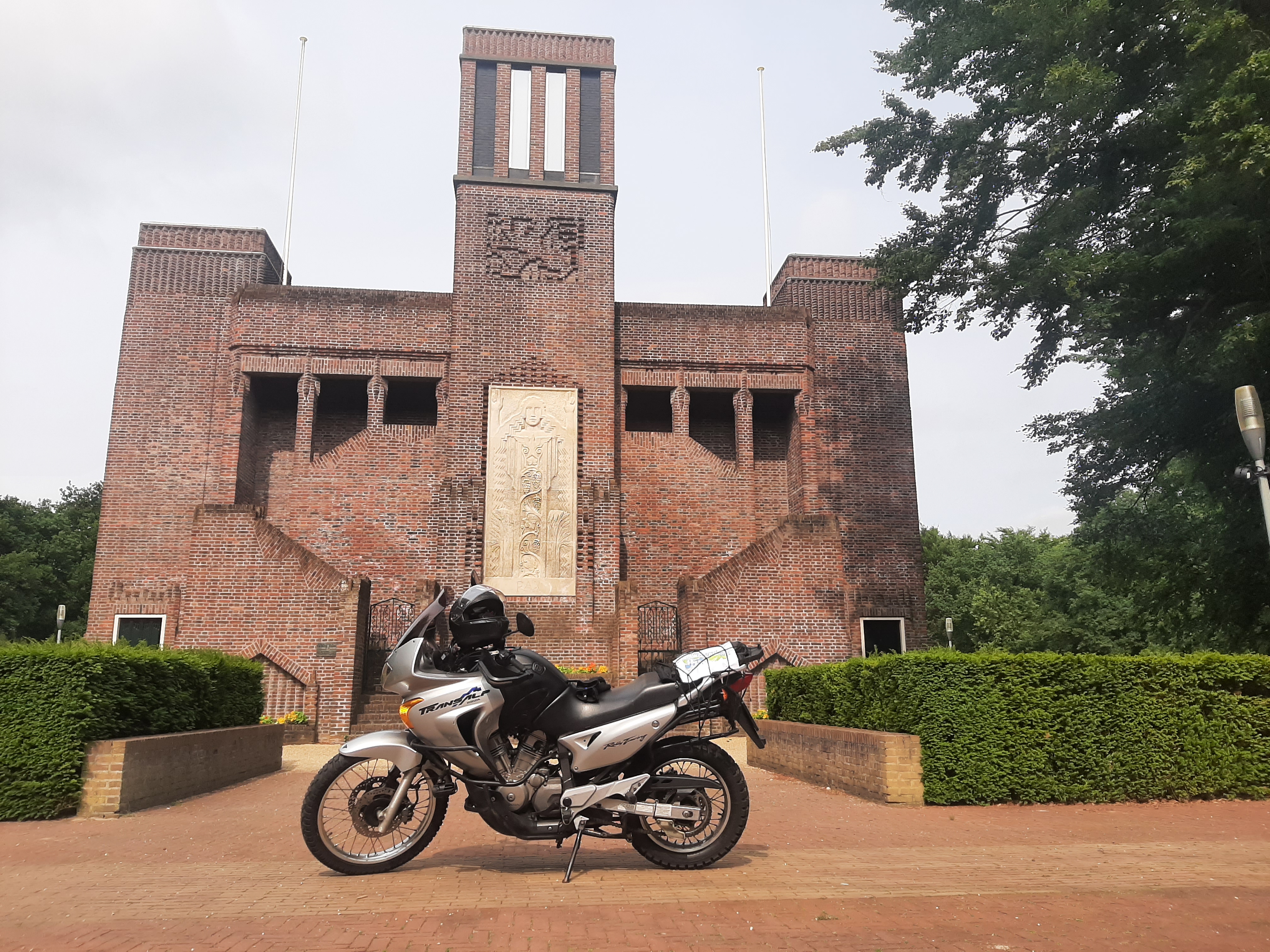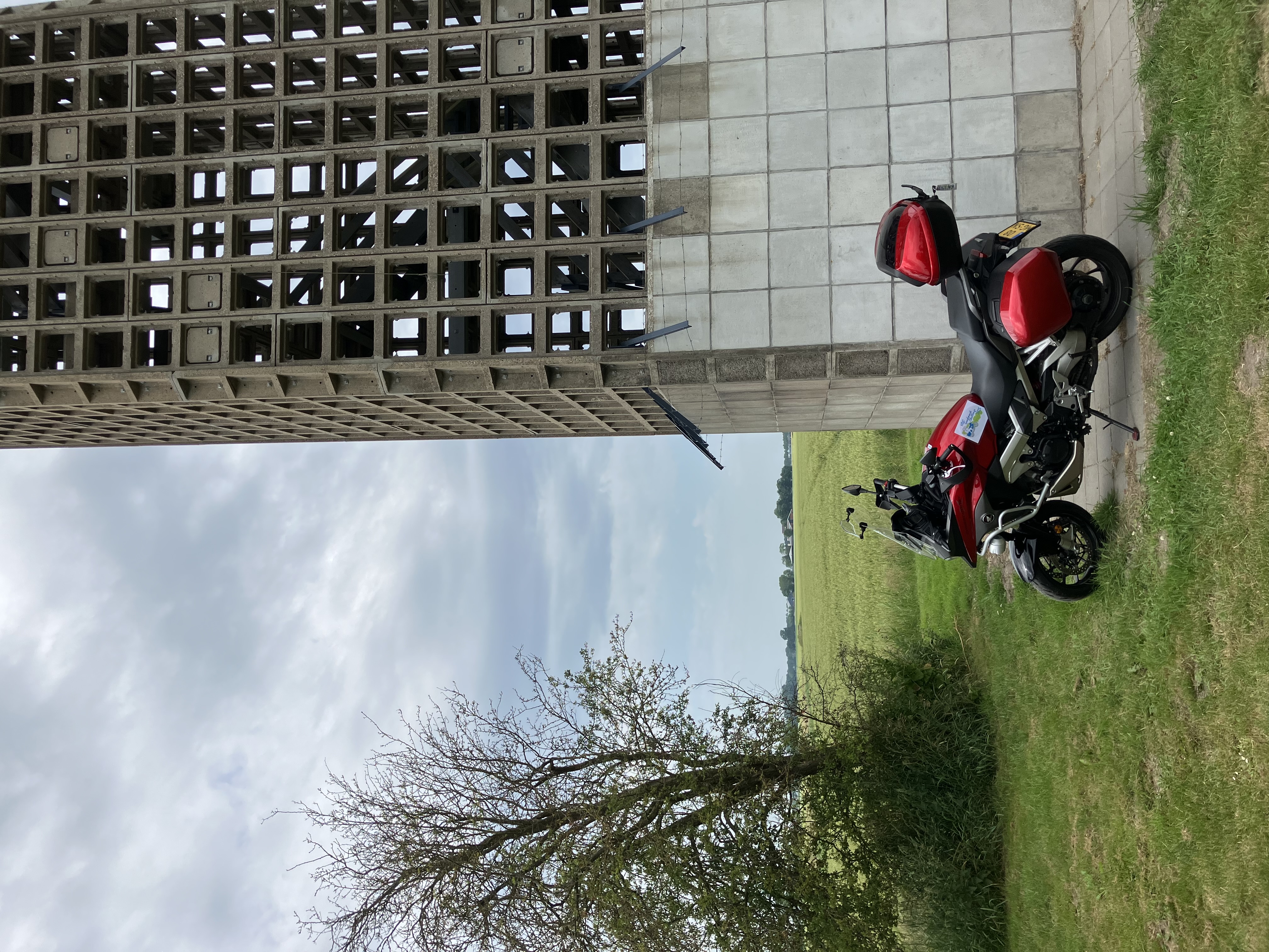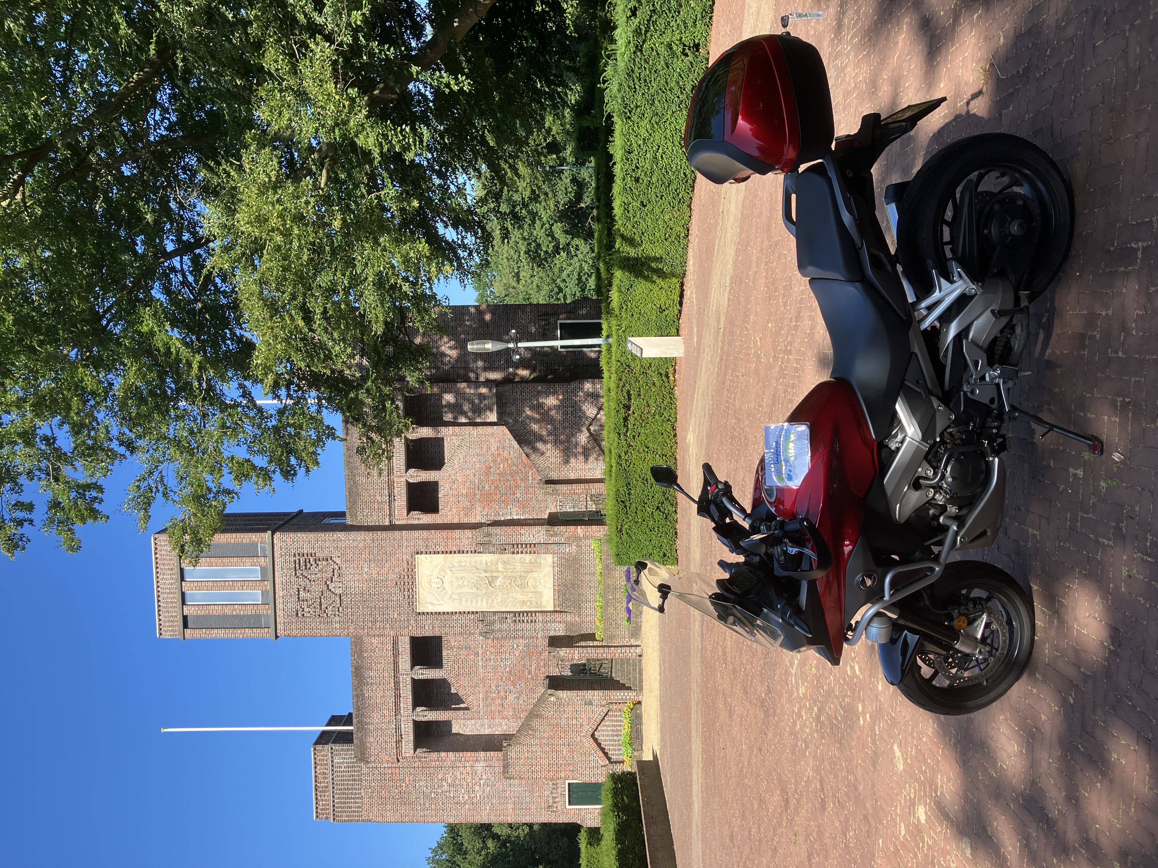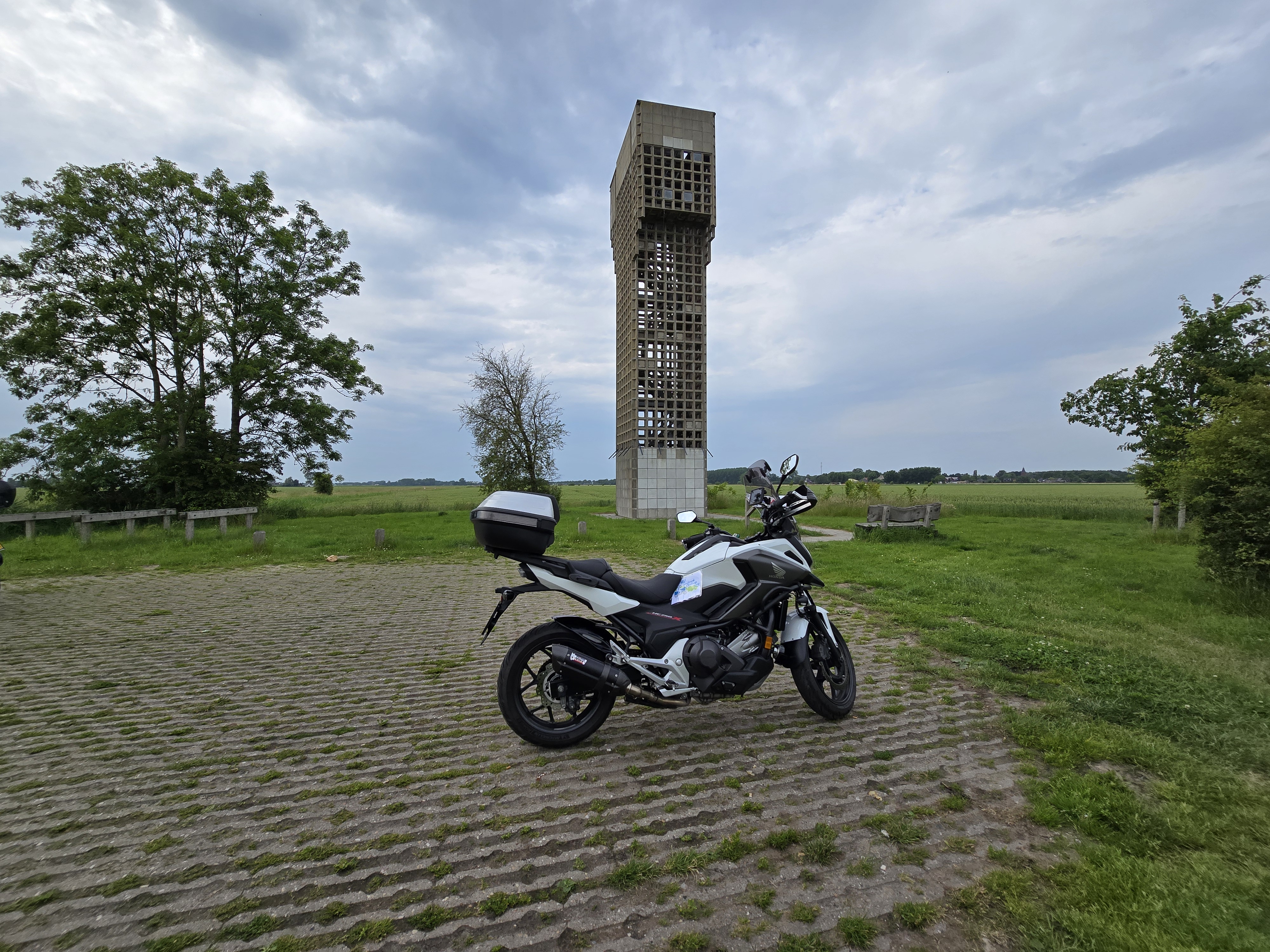 De eerste rit met kind achterop de Alp binnendoor en een beetje snelweg. En...... de landmark geschoten. Mooie plek, vogels op de achtergrond: serene rust.