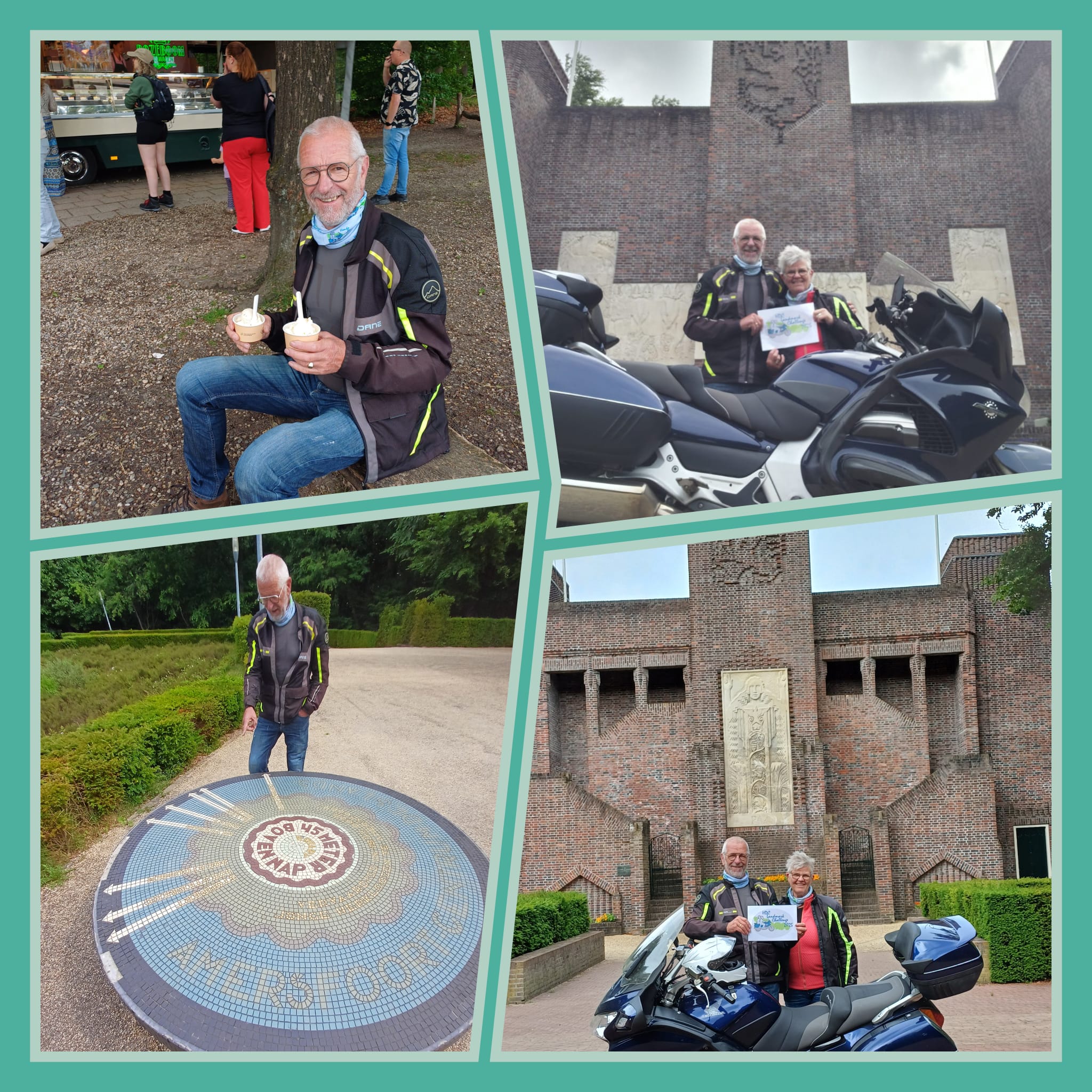 Het was erg druk bij de landmark. Allemaal motoren met een landmark kaartje.....
